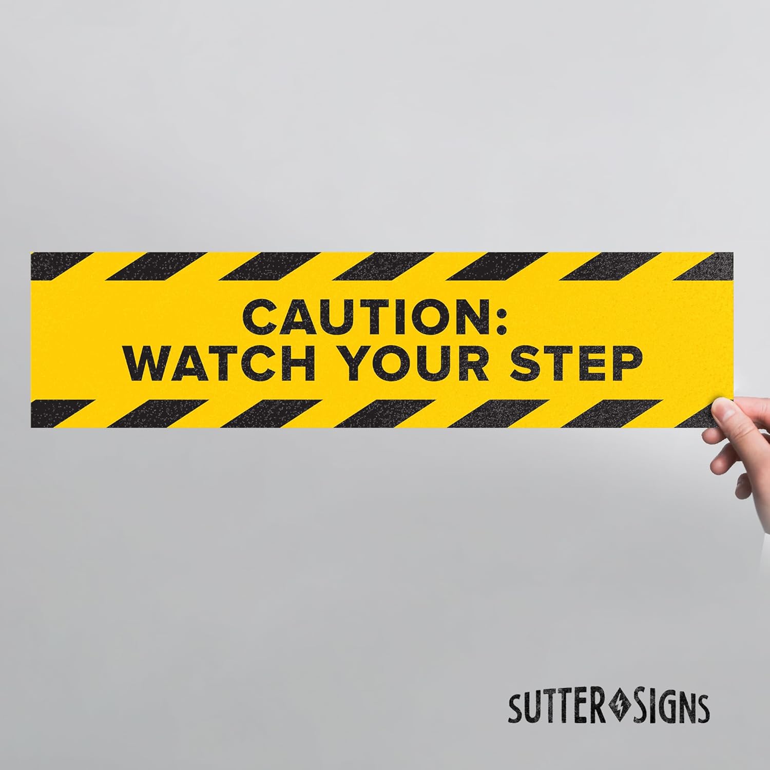Bulk Case of 50 Sets - 5pk Anti Slip Watch Your Step Floor Decals | Caution Wet Floor Sign Abrasive 80 Grit Tape Stickers for Workplace Safety