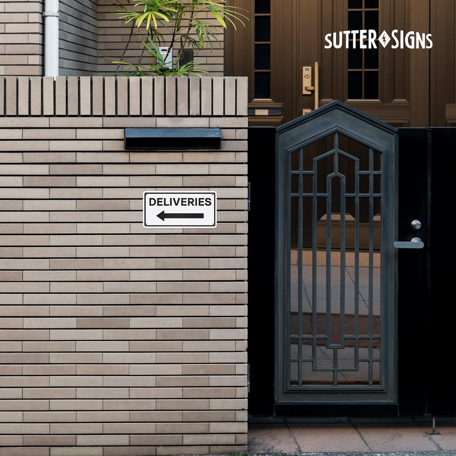 CLEAR DIRECTION | Features a bold left arrow, directing delivery services to the designated drop-off location effectively.