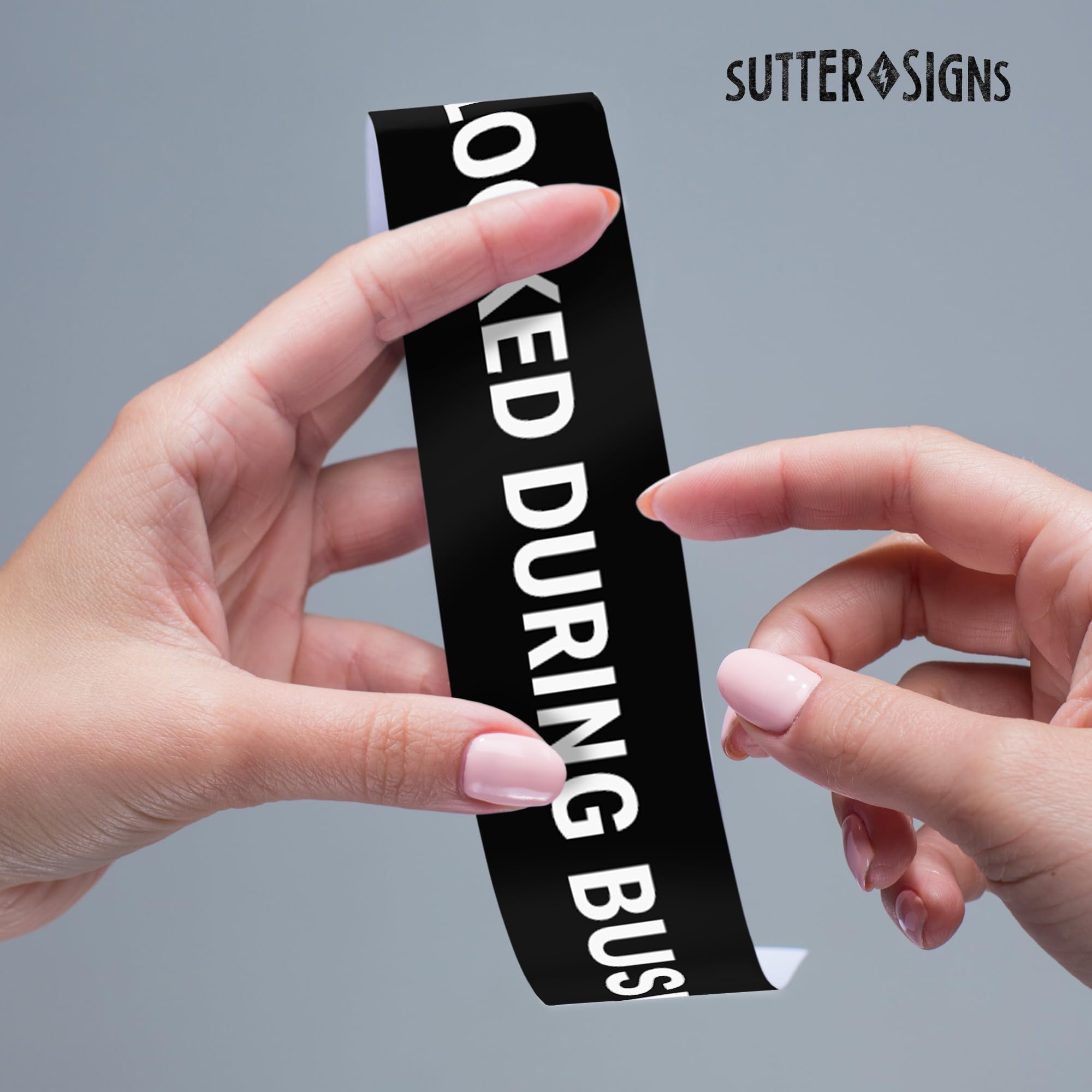 Bulk Case of 150 Signs - This Door To Remain Unlocked During Business Hours Sign Adhesive Decal Sticker 2x24 inches Black