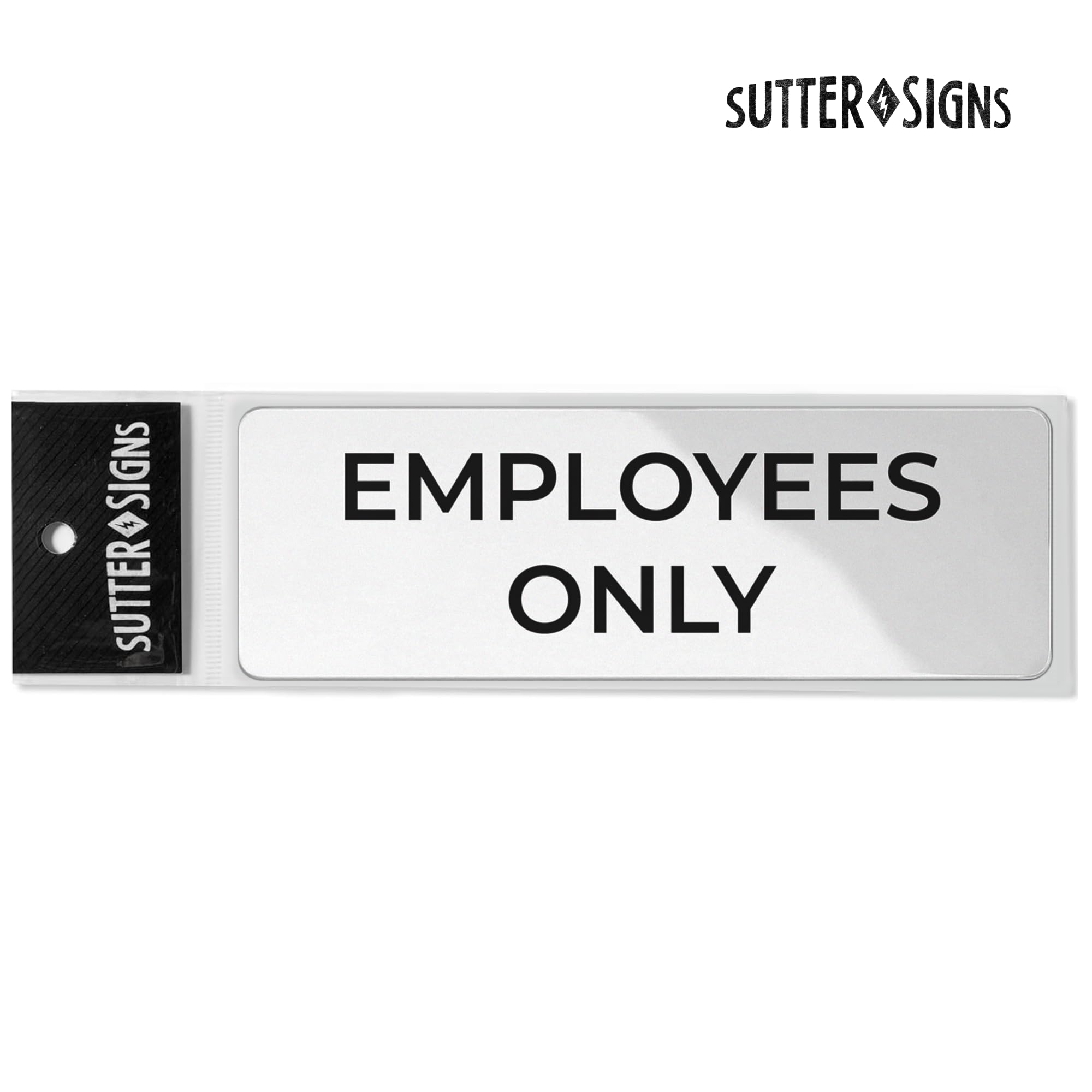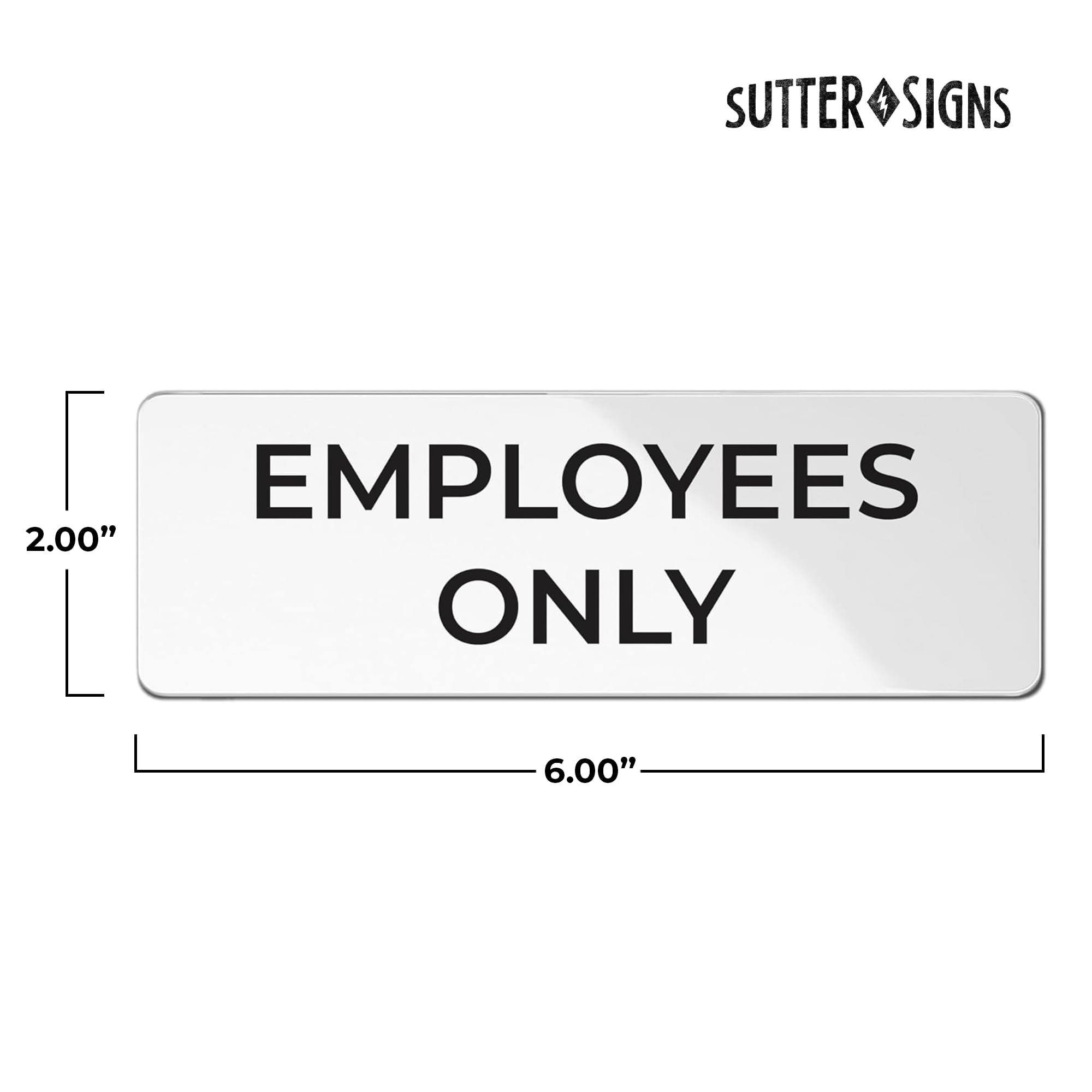 Bulk Case of 250 Signs - Employees Only Sign, Durable ABS Plastic with Full Adhesive Backing, Sign for Door or Wall, 2x6" (White)