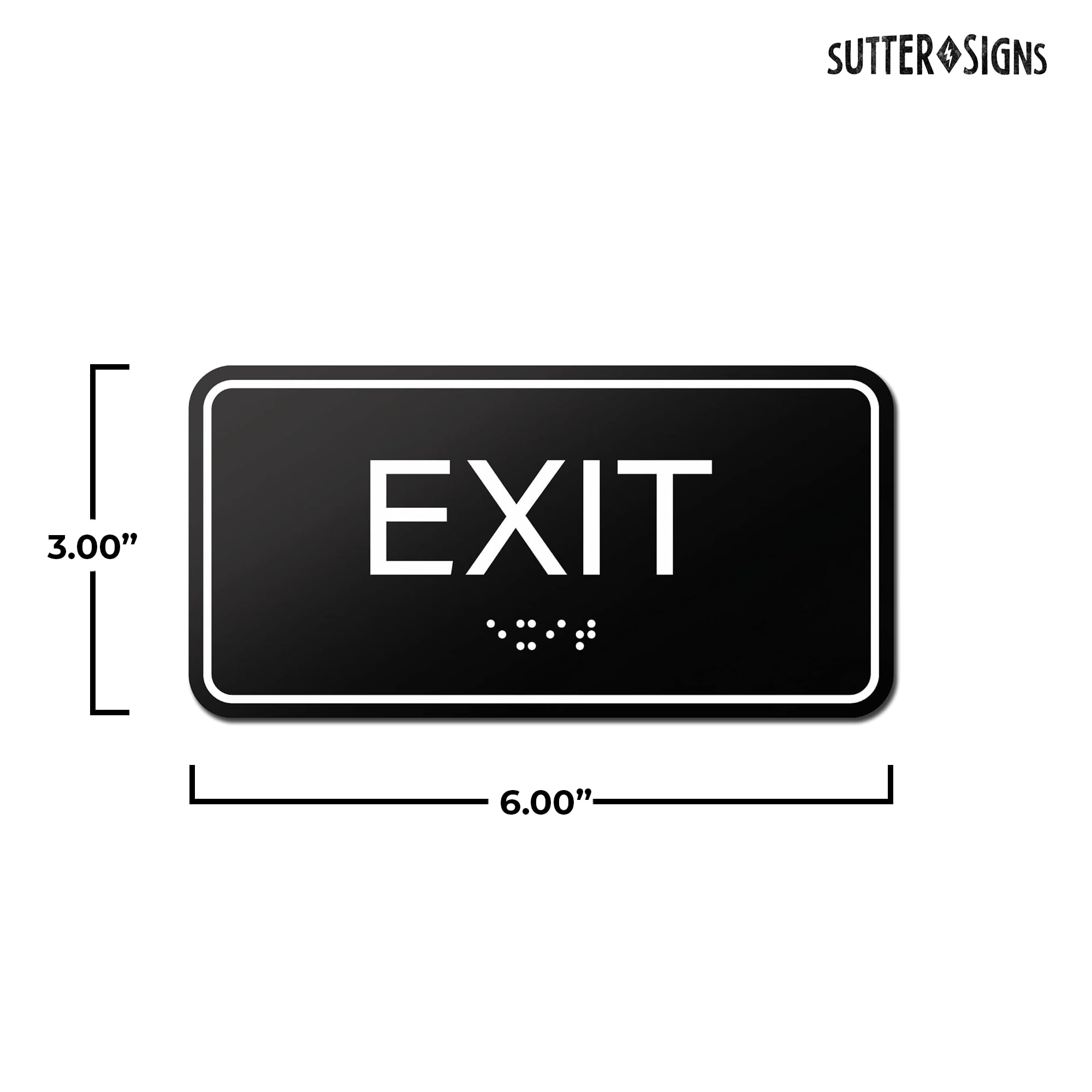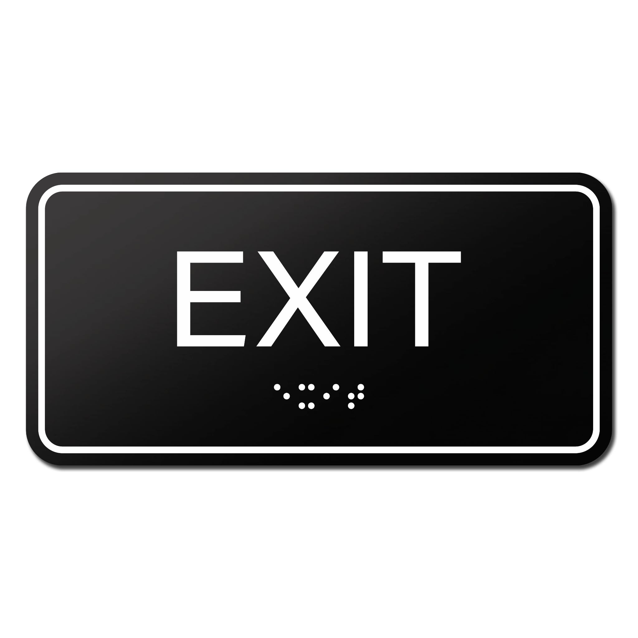 Bulk Case of 100 Signs - Exit Sign with Braille, Black, Self Adhesive ADA Building Sign, 6" x 3"