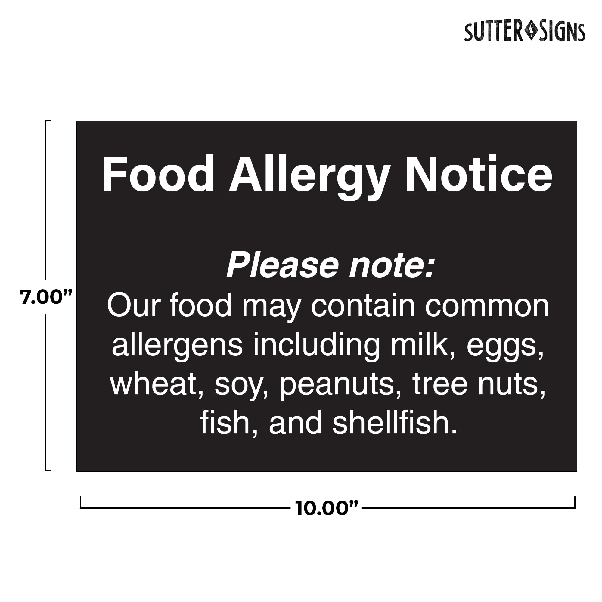 • CLEAR ALLERGY WARNING | Displays a bold food allergy notice to alert customers and staff to the presence of allergens, promoting safety in food service environments.