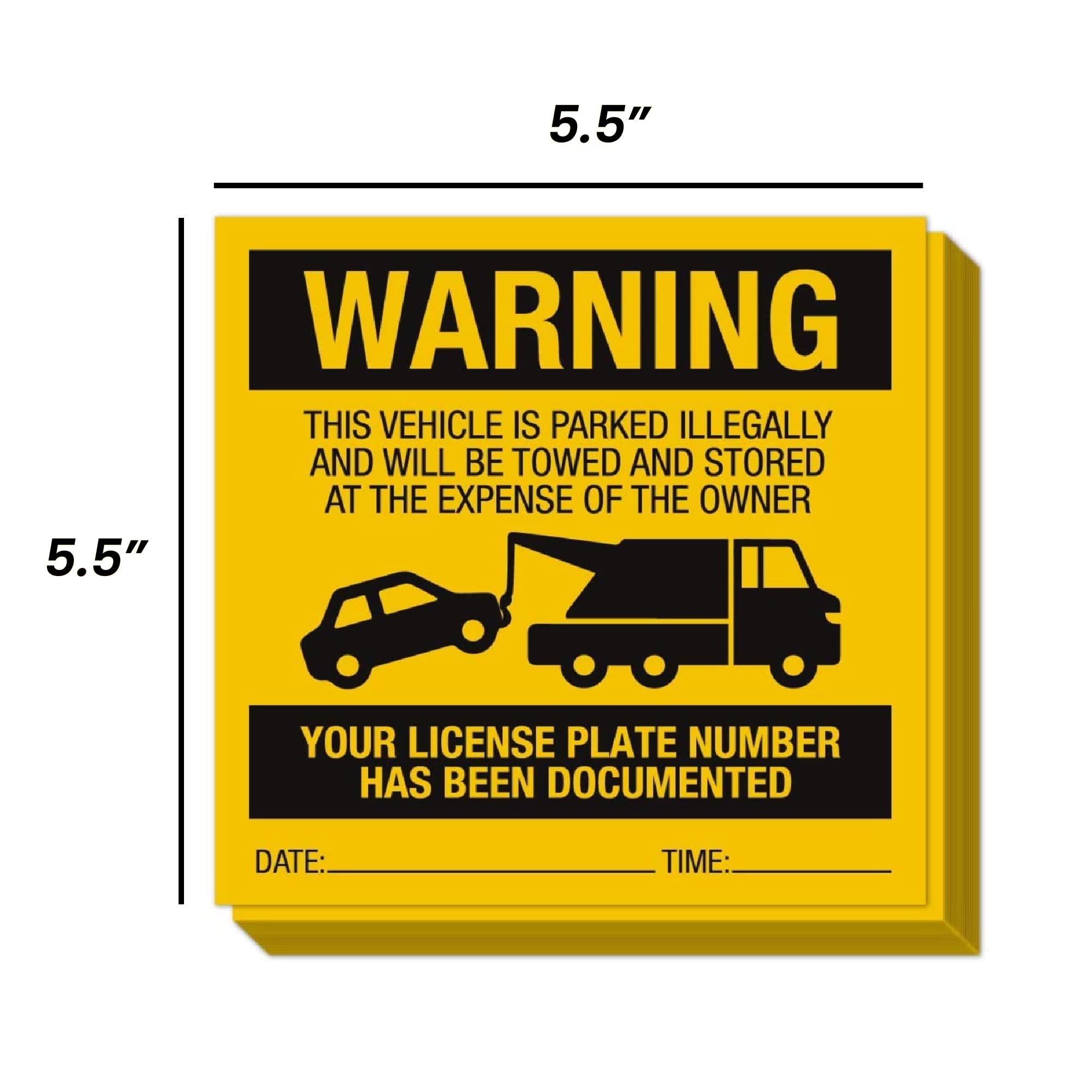 Bulk Case of 63 Sets - Illegally Parked Warning Stickers (Pack of 25) | Tow Away Warning Sign for Illegal Car Vehicle Parking Violation