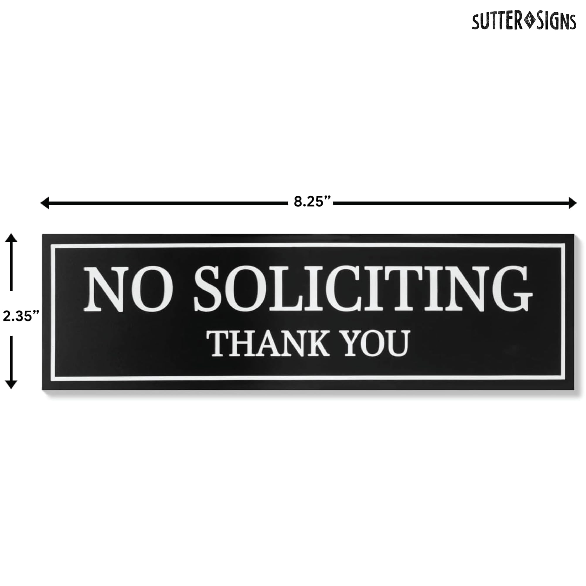 Bulk Case of 250 Signs - No Soliciting Sign for Front Door | Sturdy Black Plastic with Full Adhesive Backing, 8.25" x 2.35"