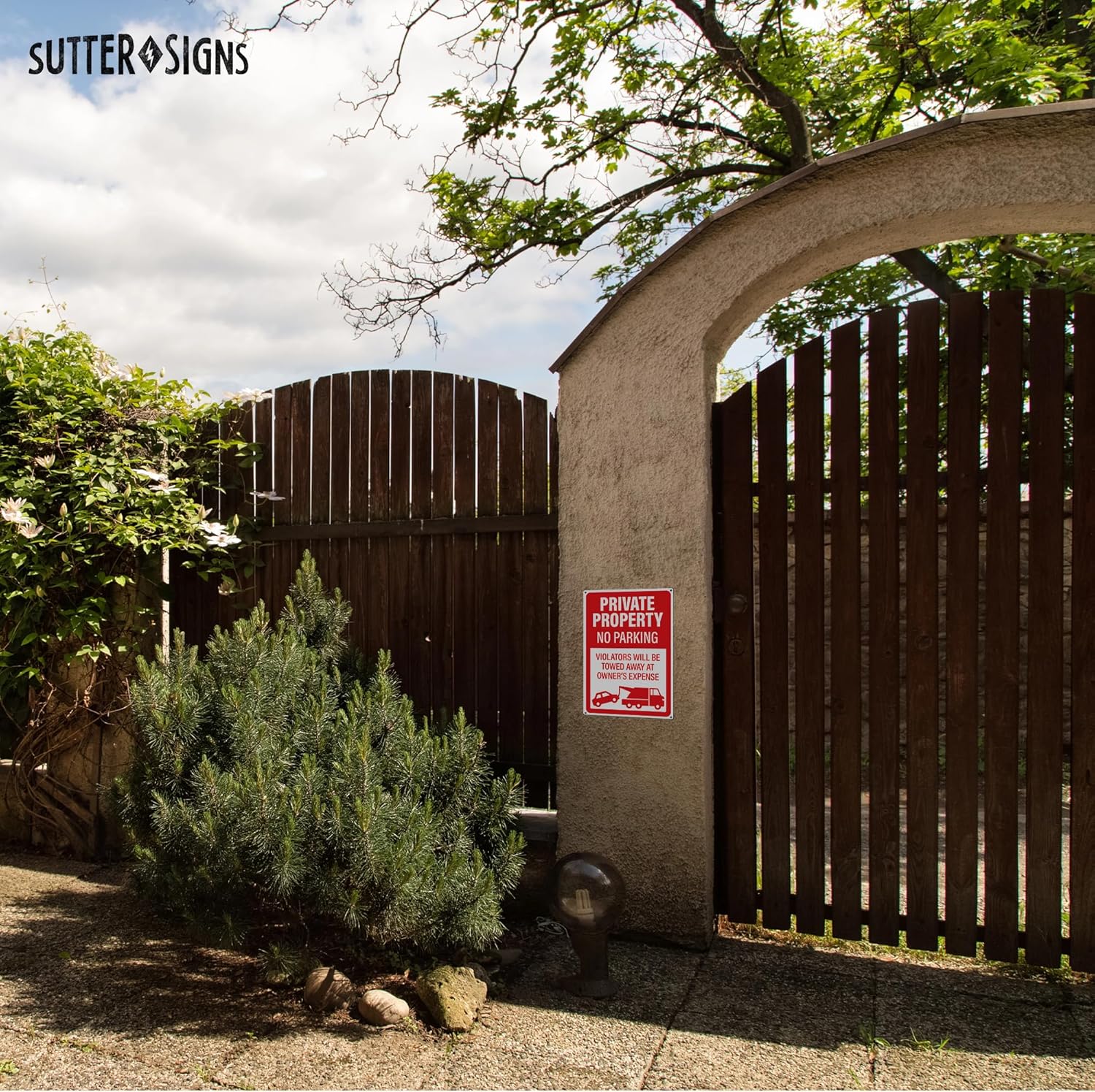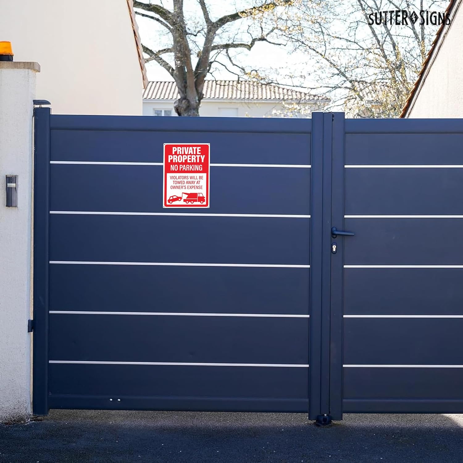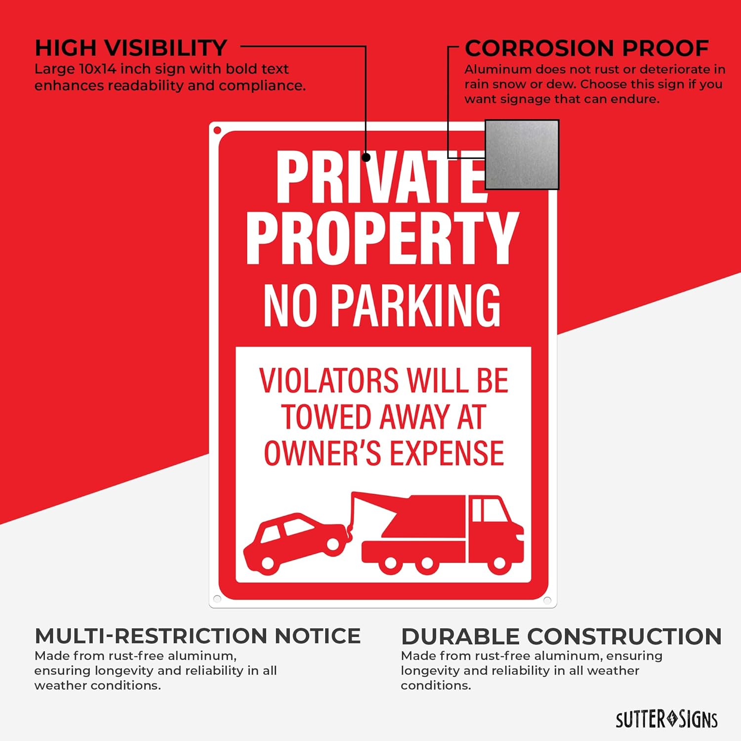 • FORCEFUL WARNING | Clear 'Violators Will Be Towed' message discourages unauthorized parking effectively.