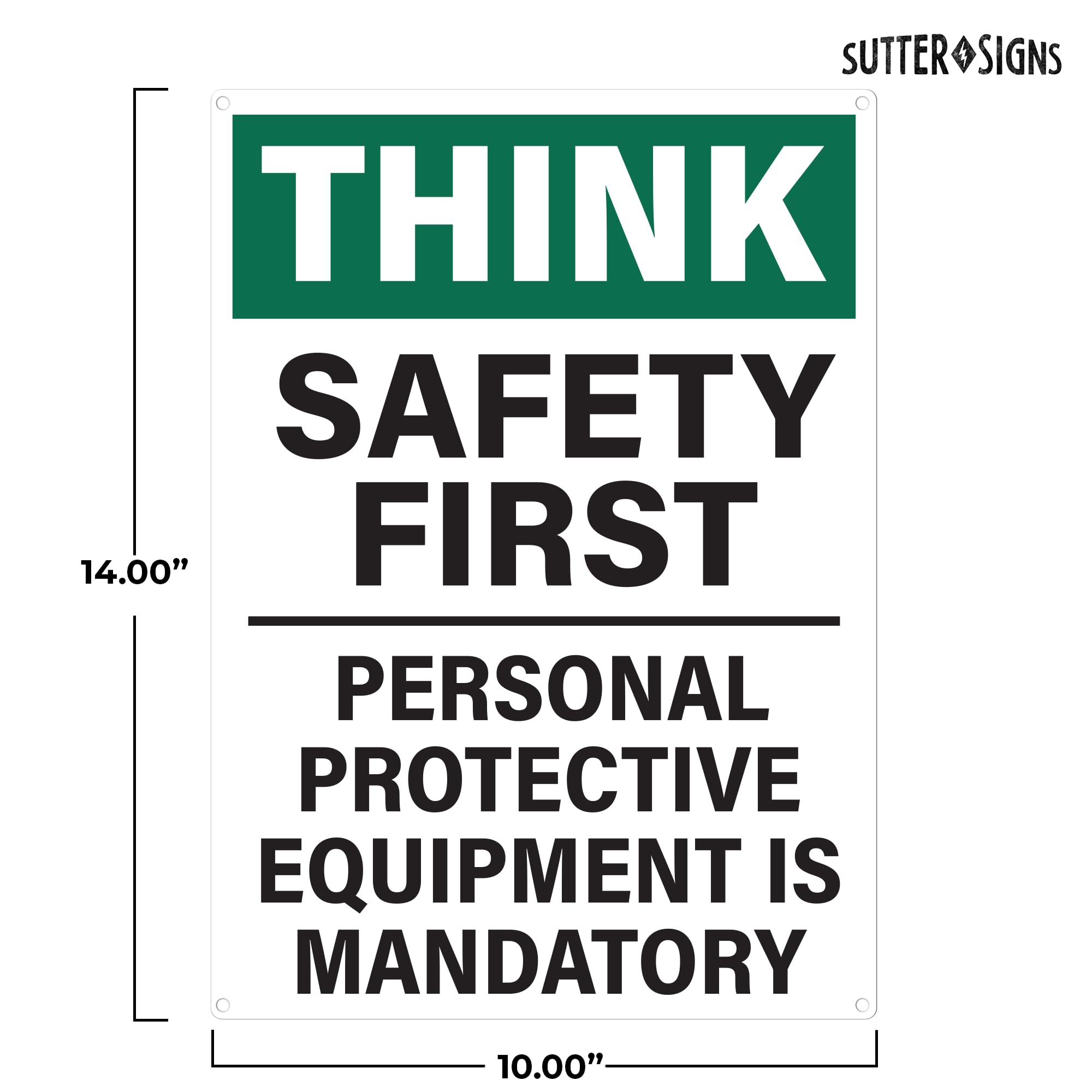 Bulk Case of 60 Signs - Safety First Workplace Sign | Personal Protective Equipment Required Workplace Safety Sign, 10x14 Inch Rust-free Aluminum