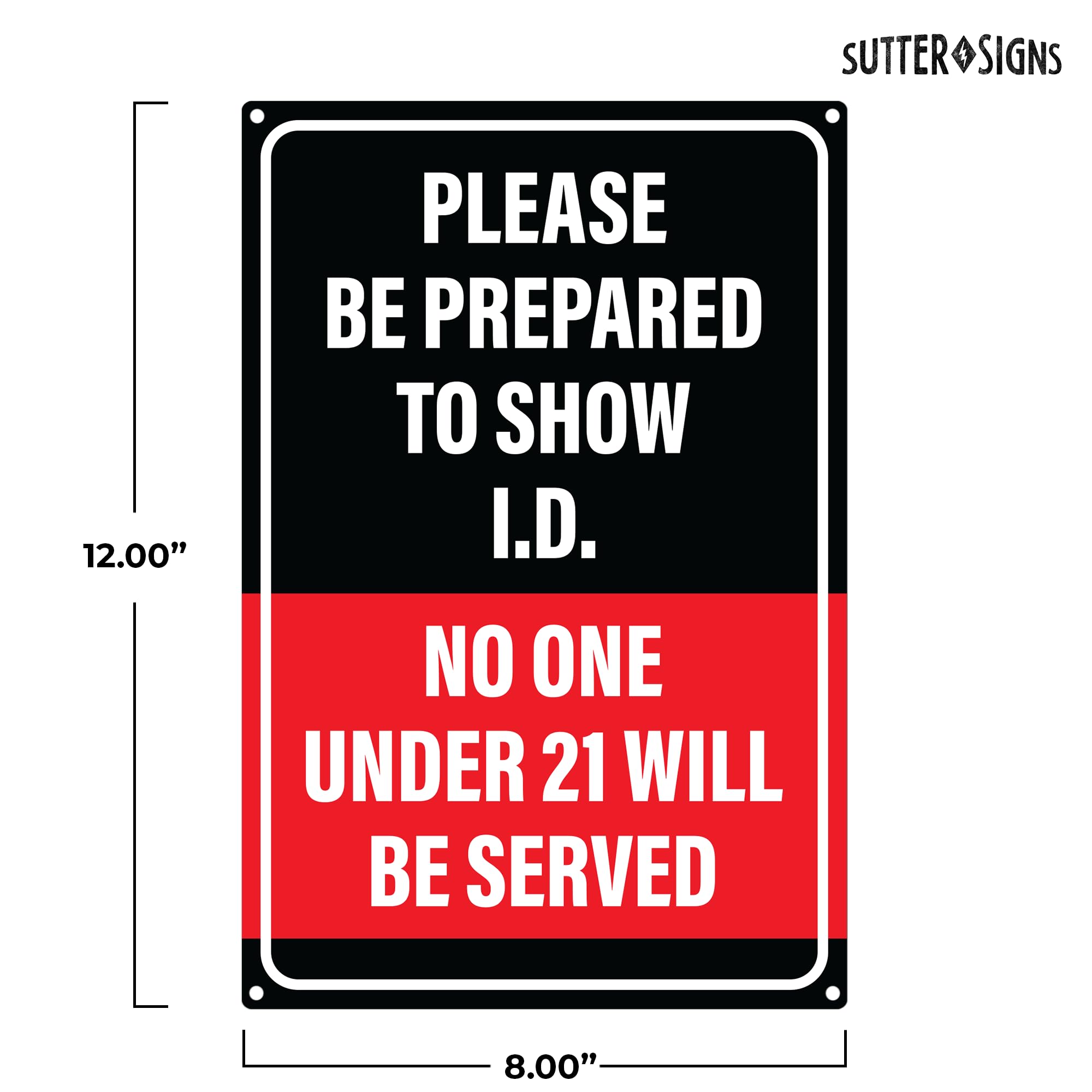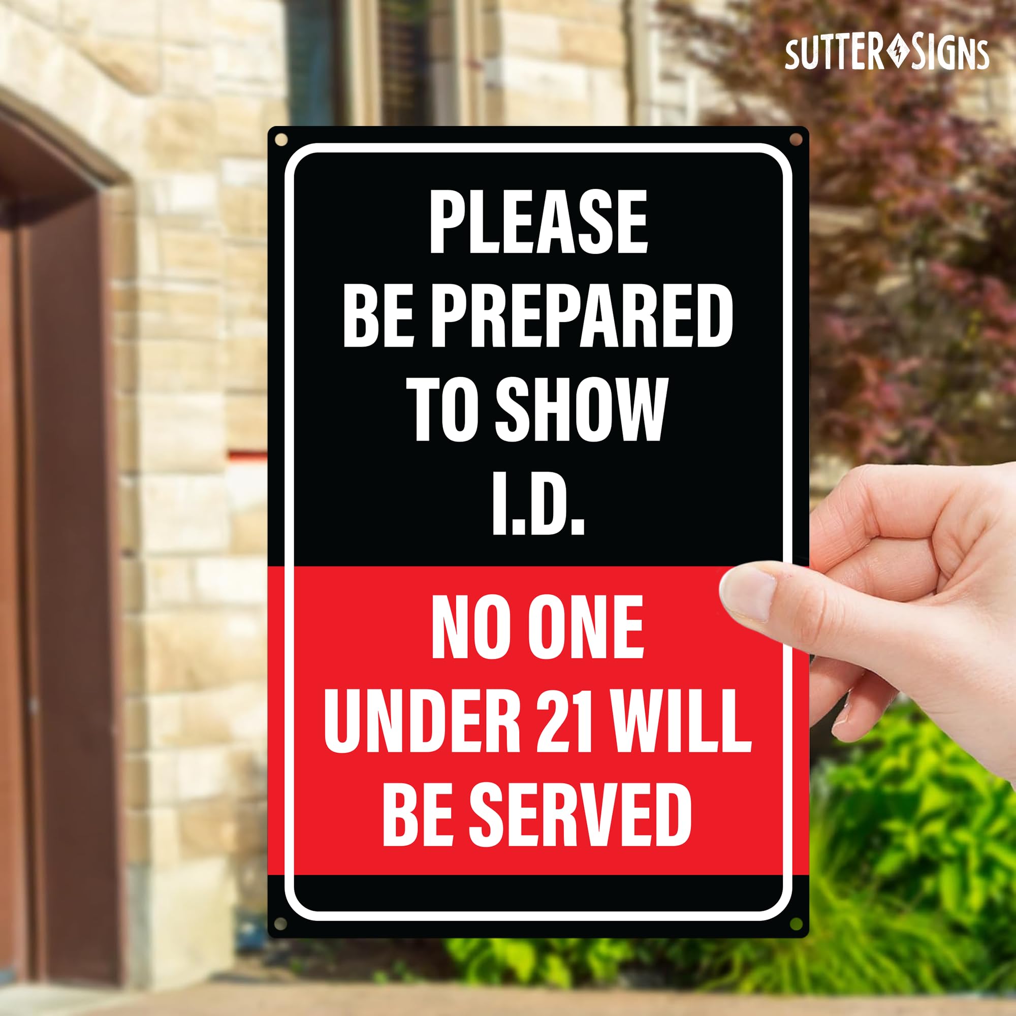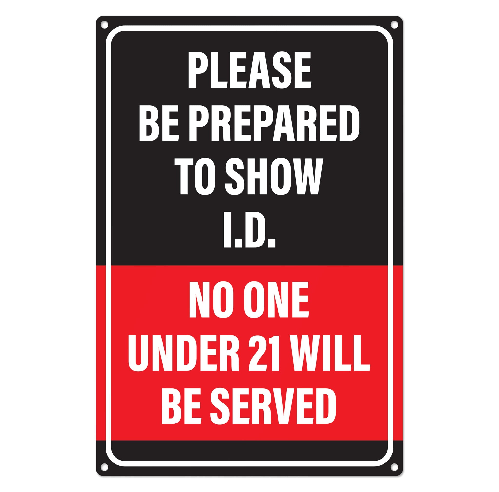 Bulk Case of 100 Signs - Be Prepared to Show ID Sign | No One Under 21 Will Be Served, Must Be 21 to Enter, 12x8 Inch Rust-free Aluminum