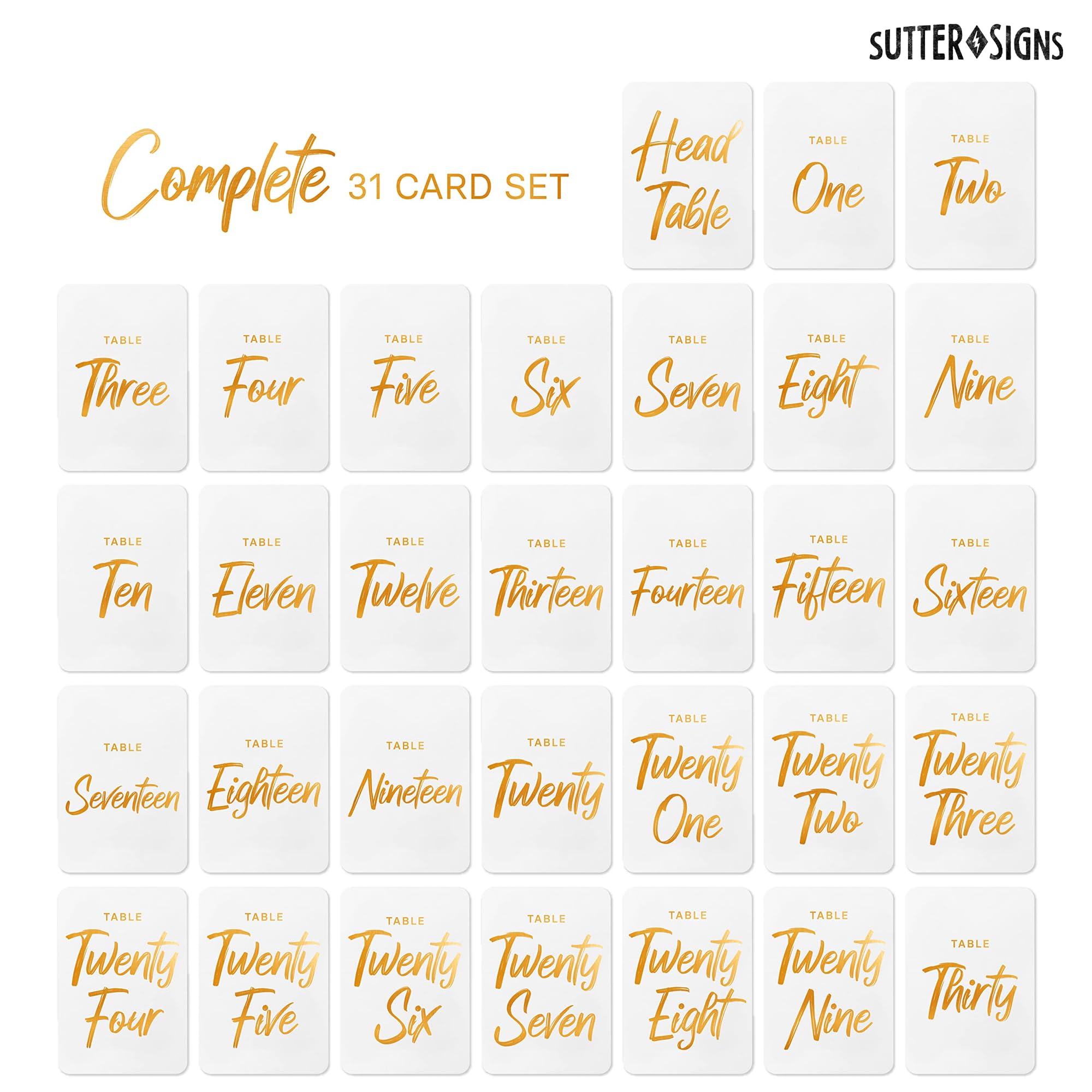THE PERFECT AMOUNT | With numbers ranging from 1 to 30, a "Head Table" card and a bonus blank card, these double sided wedding table numbers make it easy to keep your event organized while adding a personalized touch that guests won't soon forget.