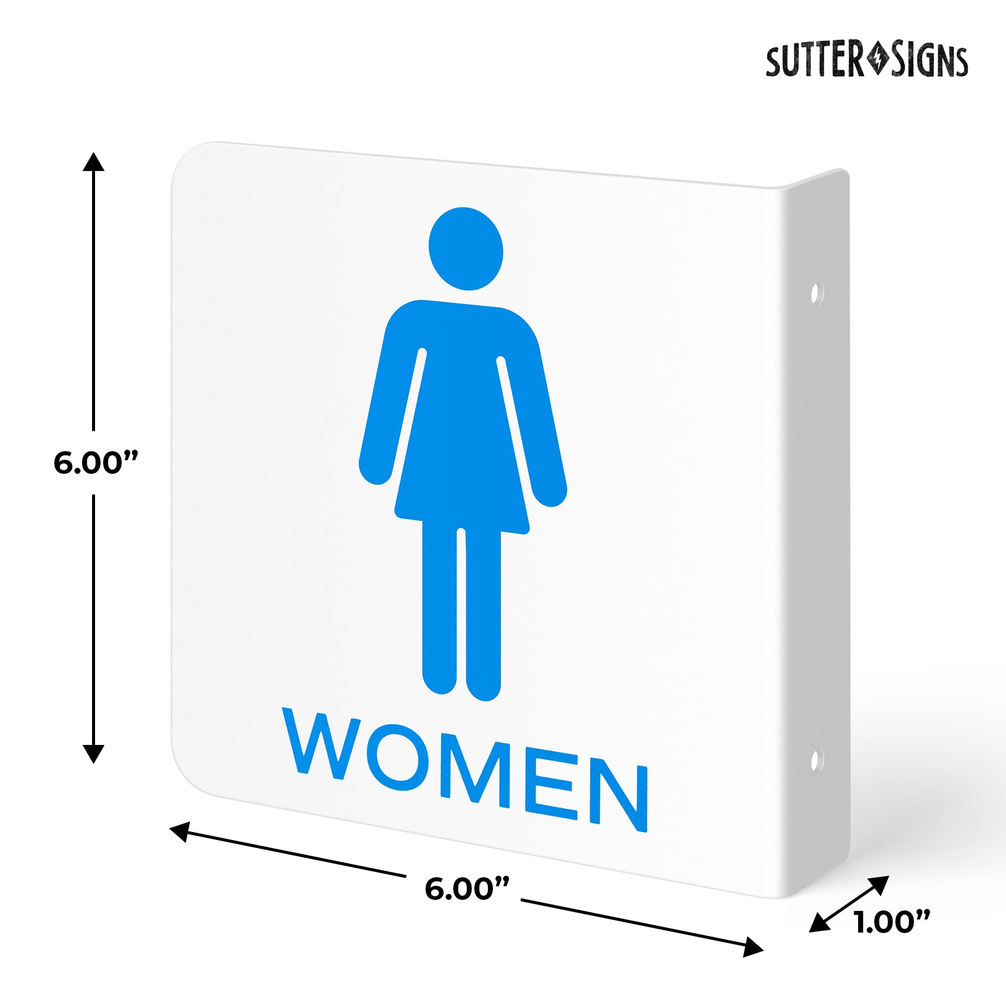Bulk Case of 100 Sets - Women's Restroom Sign | 6" x 6" Double Sided Wall Mounted Projecting Sign
